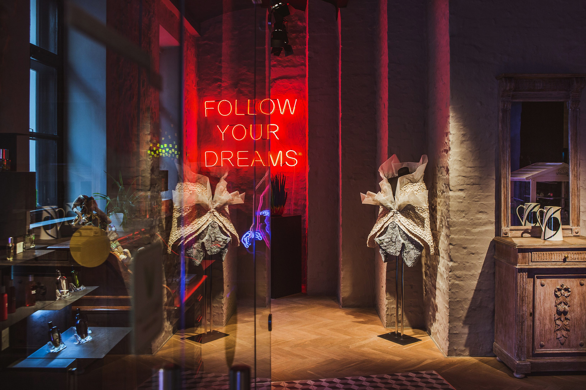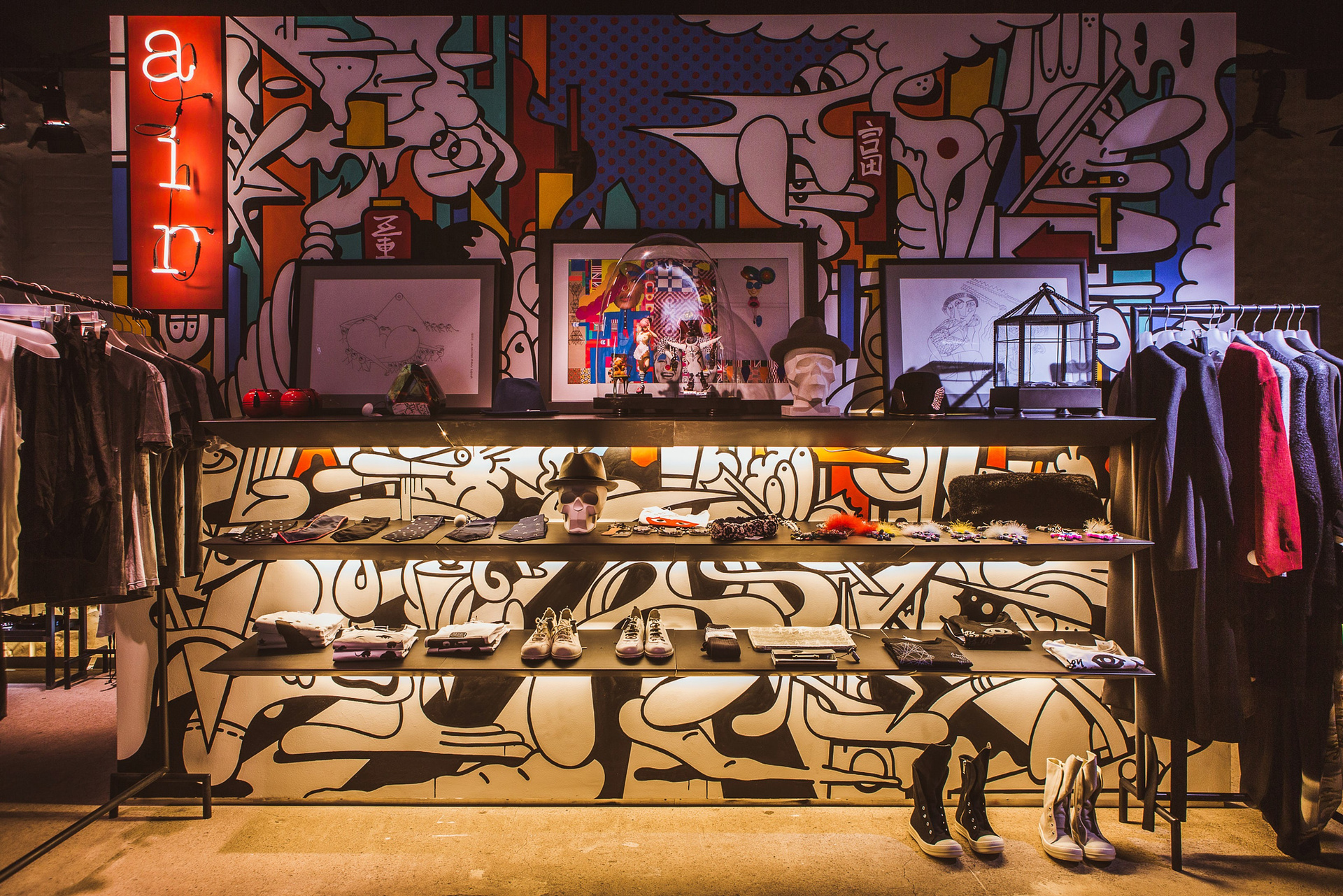 Ассортимент магазина отражает концепцию «art + fashion» — отбираются бренды не просто как модные марки, а как творческие проекты: «Мы стараемся привозить бренды, которых вы больше нигде не купите ни в России, ни в Европе… такие бренды как NOZOMI ISHIGURO, PHENOMENON, ATO, AKIRA NAKA, MINTDESIGNS, THEATRE PRODUCTS». Air Moscow